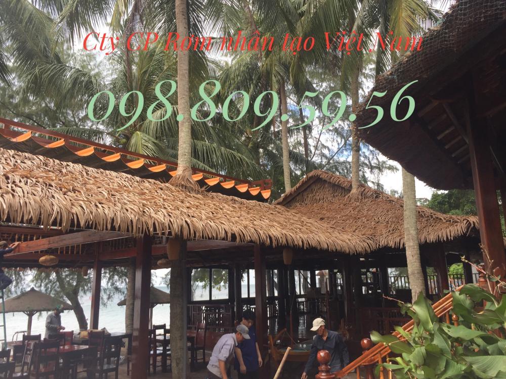 Mẫu mái lá cọ nhân tạo, mái tranh nhân tạo đang thi công tại Phú Quốc Resort