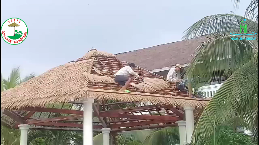 Công ty Cổ phần Rơm Nhân Tạo Việt Nam thi công lợp mái chòi Rơm nhân tạo tại dự án Vinhomes River side