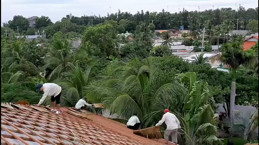 Quá trình thi công lợp mái lá nhân tạo tại Resort Múi Né - Phan Thiết